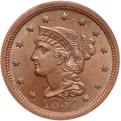 Lot 335 of 2384: 1854 N-3 R1 PCGS graded MS65 Brown, CAC Approved