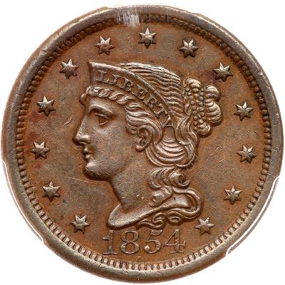 Lot 351 of 2384: 1854 N-20 R3 Misplaced 1 PCGS graded AU58