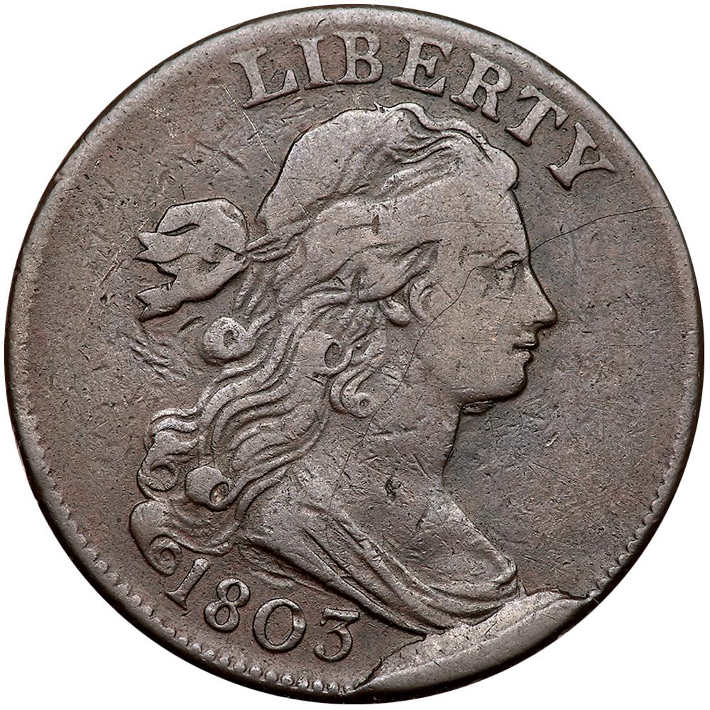 Lot 210 of 3524: 1803 S-249 R2 Corrected Denominator 100/000 PCGS graded VF20, CAC Approved