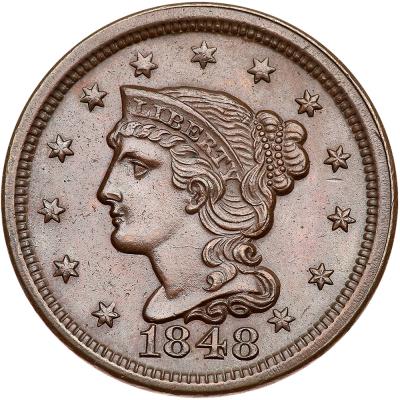 Lot 498 of 3524: 1848 N-21 R3- PCGS graded MS63 Brown, CAC Approved