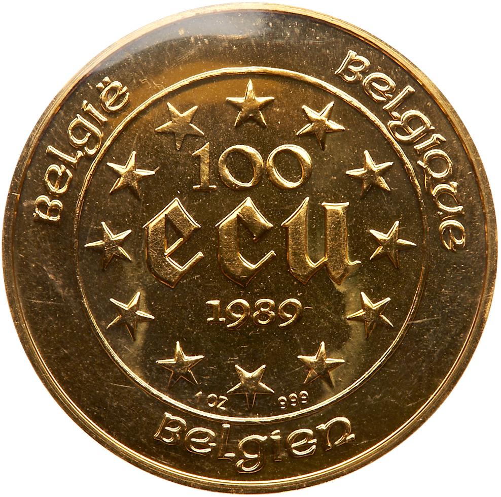Lot 2190 of 3524: Belgium. 100 Ecu, 1989 Choice Brilliant Unc