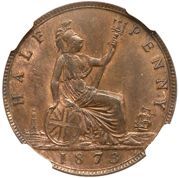 Lot 3118 of 3524: Great Britain. Halfpenny, 1873 NGC MS63 BR