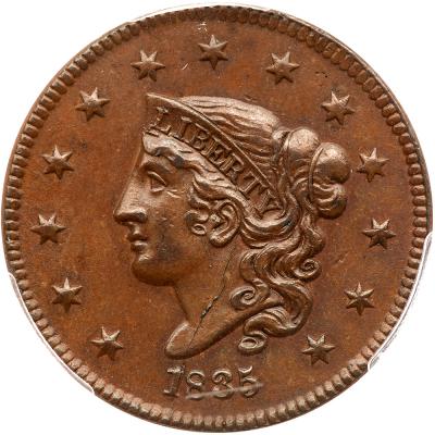 Lot 334 of 3139: 1835 N-8 R1 Head of 1836 PCGS graded MS62 Brown