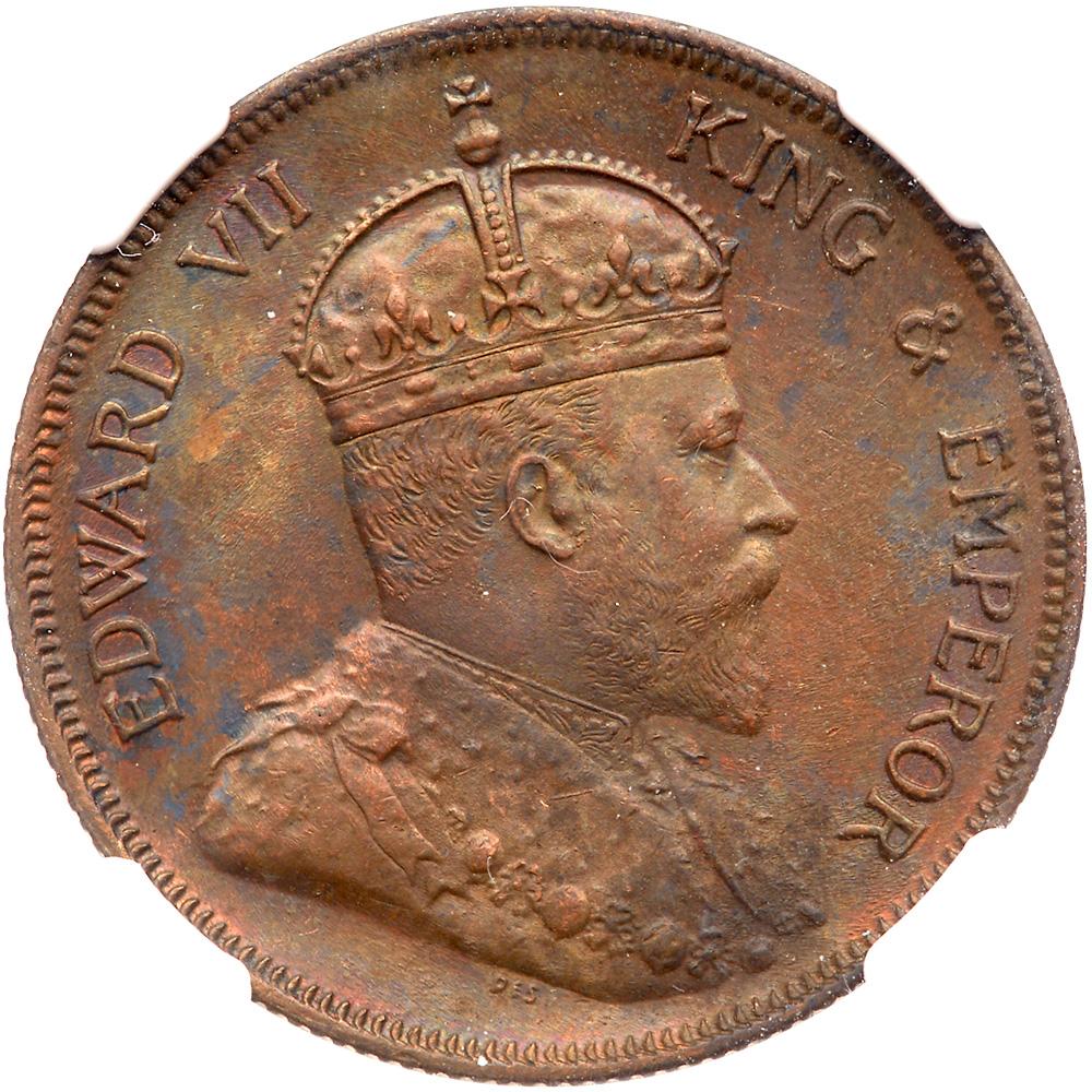 Lot 3142 of 3091: Straits Settlements. Cent, 1908 NGC MS62 BR