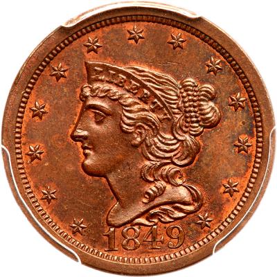 Lot 201 of 3091: 1849 C-1 R2- PCGS graded MS64 Red & Brown, CAC Approved