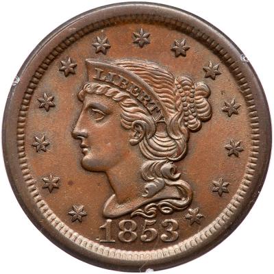 Lot 439 of 3706: 1853 N-3 R1 PCGS graded MS65 Brown, CAC Approved (OGH)