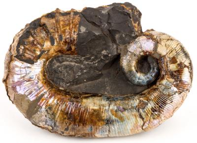 Lot 696 of 1120: 9" Ancyloceras Aberramt Ammonite With Brown Iridescent Mother of Pearl
