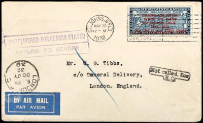 Lot 1018 of 1120: May 20, 1932 St Johns Newfoundland to London DO-X Flight Cover, London Backstamp
