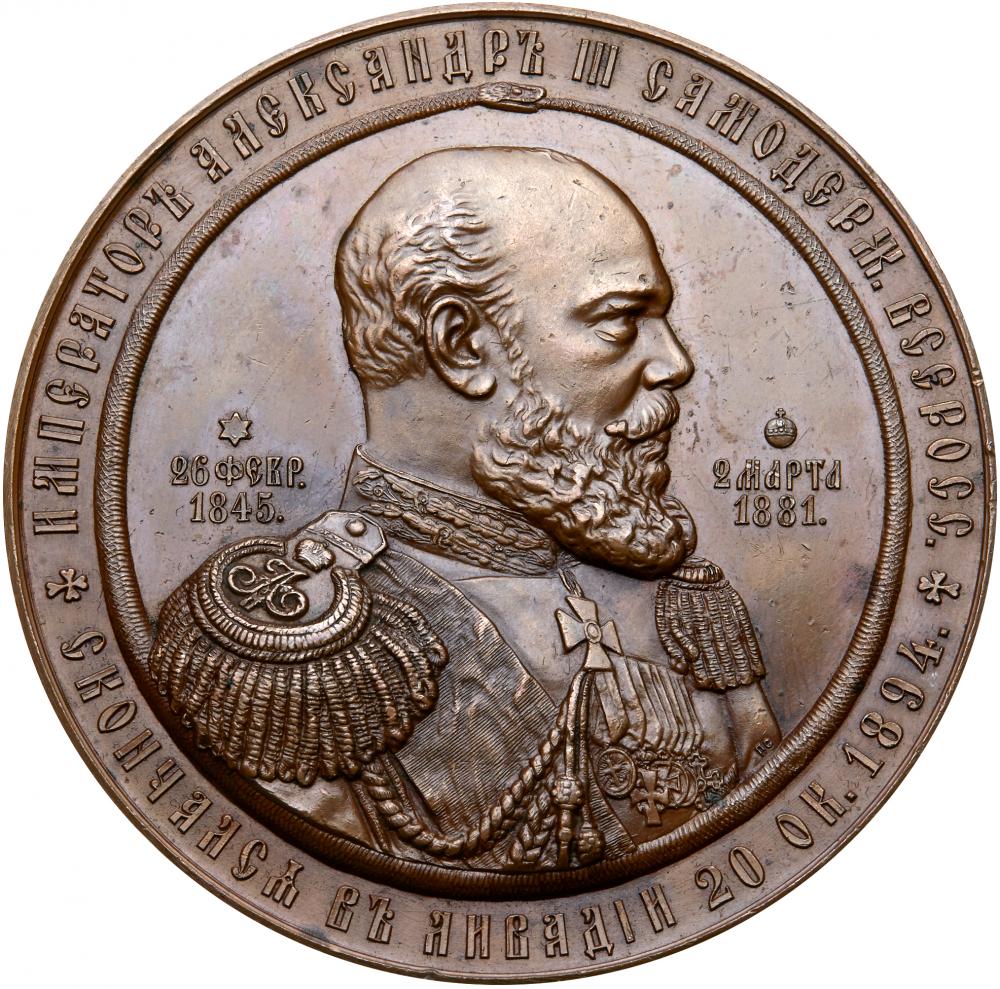 Lot 2213 of 1043: Medal. Bronze. 81 mm. By P. Stadnitsky. Death of Alexander III, 1894.