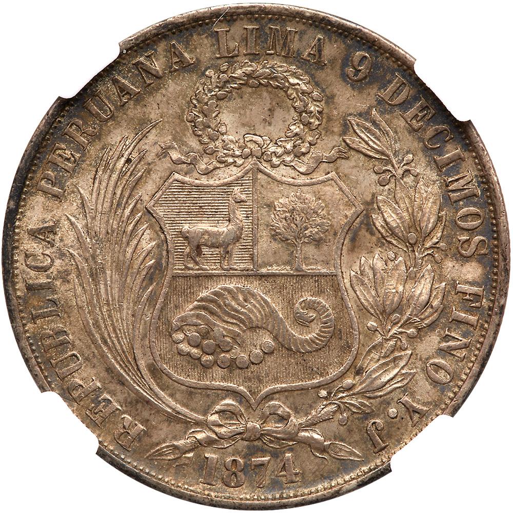 Lot 2365 of 2376: Peru. Sol, 1874-YJ NGC MS62