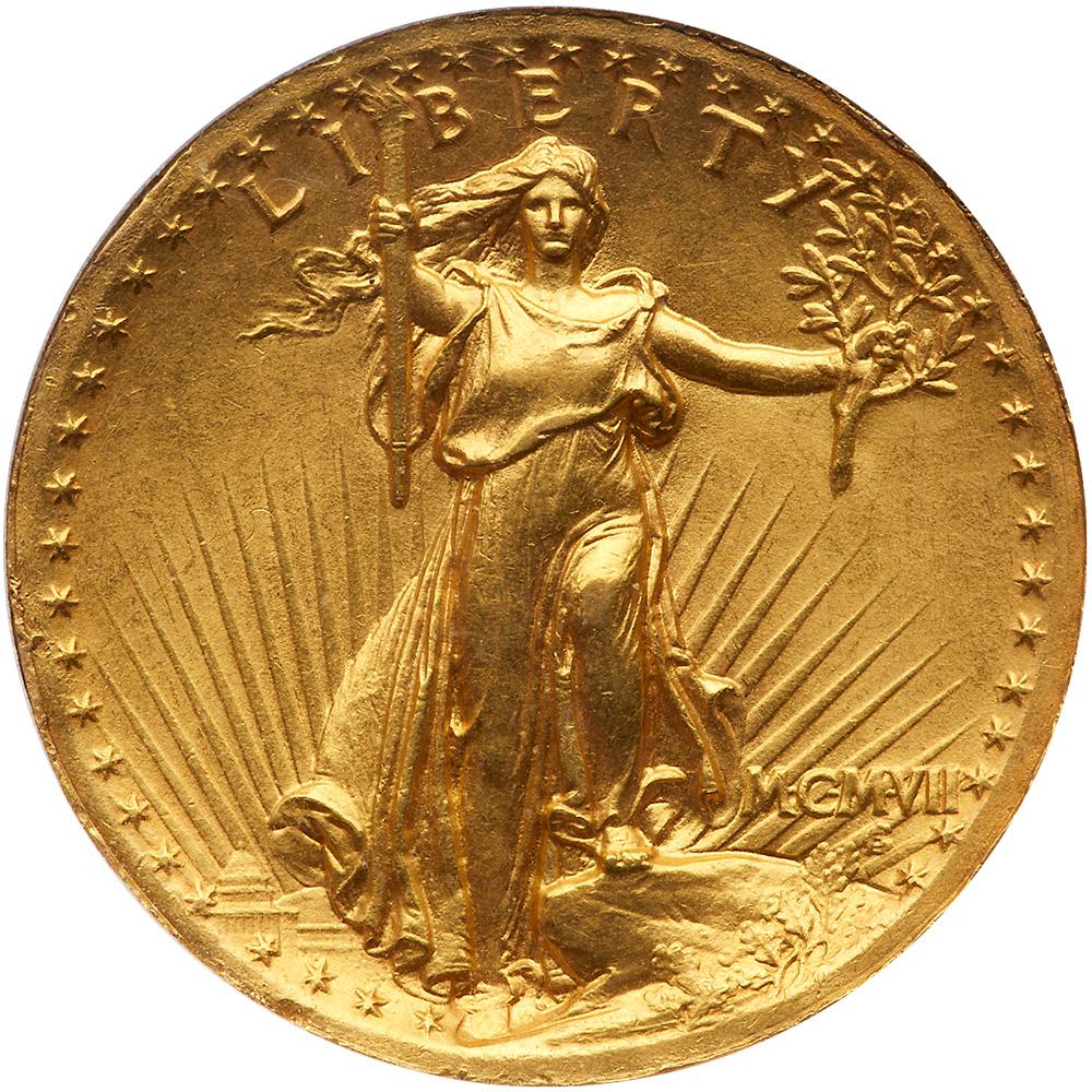 Lot 802 of 2376: 1907 $20 St. Gaudens. High Relief, Wire Rim