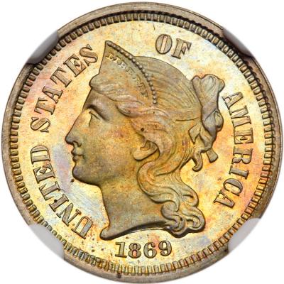 Lot 268 of 2376: 1869 Nickel 3C NGC Proof 67