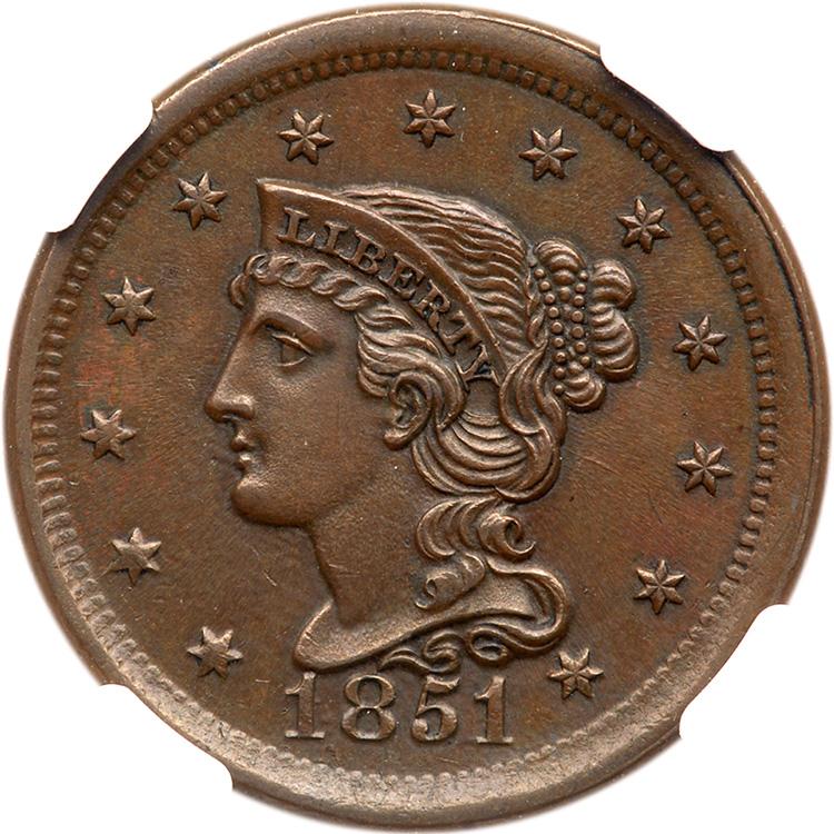 Lot 132 of 2376: 1851 N-6 R1 Repunched 1's NGC graded MS62 Brown