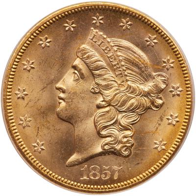 Lot 1544 of 2858: 1857-S $20 Liberty PCGS MS64