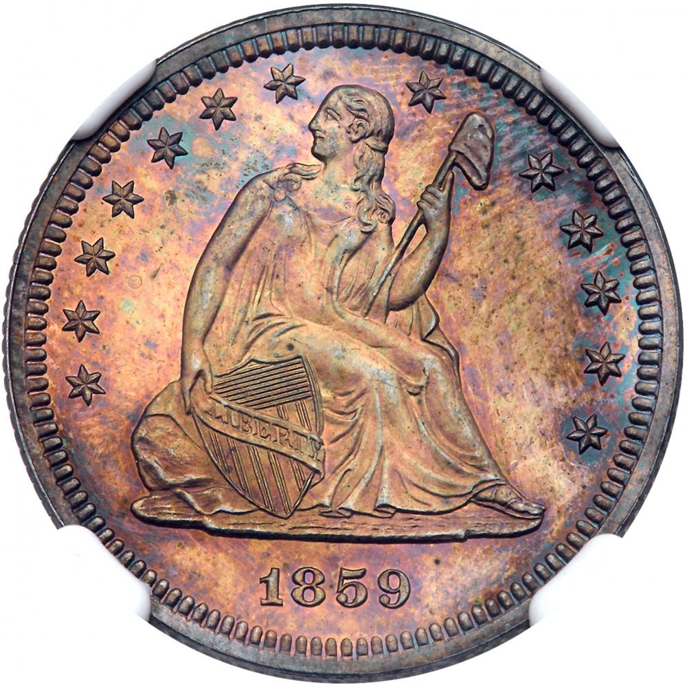 Lot 825 of 2595: 1859 Liberty Seated 25C NGC Proof 65