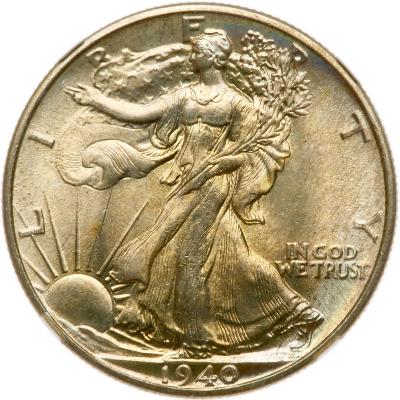 Lot 896 of 2595: 1940 Liberty Walking 50C NGC MS68