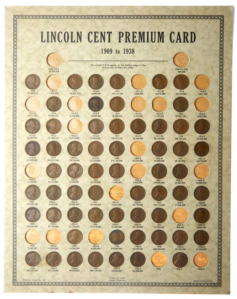 Lot 1080 of 2595: WITHDRAWN - A Lincoln Cent Coin Board made by J. Oberwise in 1938