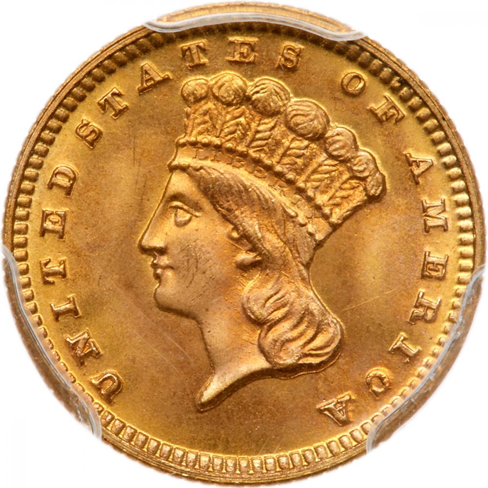 Lot 1135 of 2595: 1870 $1 Gold Indian PCGS MS67