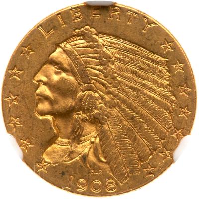 Lot 1153 of 2595: 1908 $2.50 Indian NGC MS62