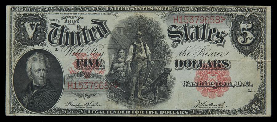 Lot 1371 of 2595: 1907, $5 United States Note Fine