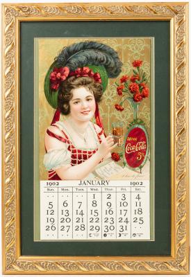 Lot 251 of 1489: Coca-Cola: Rare 1902 "Girl With Feathered Hat" Calendar, Exceptional Colors
