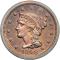 1846 N-22 R7 Small Date Proof-Only. PCGS graded Proof 64 Red & Brown. Mint red fading to bluish steel brown with half the original red color remaining, mostly on the obverse. The obverse is a remarkable gem, virtually flawless. The reverse is not quite as nice because of a small swipe of darker brown toning at ICA, and there are minute specks of crud in protected areas of the stain. The only other flaw is microscopic lamination down from the right base of E in CENT, as struck. The fields are nicely reflective with deep mirrors that offer outstanding eye appeal. A great cent and a solid gem except for the small stain. Finest by a small margin of only 6 known, and one of those is housed in the Smithsonian. Called Proof-64 and finest known by a small margin in the Del Bland and Denis Loring census lists.