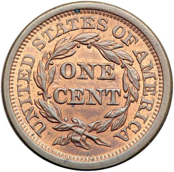 1850 N-3 R1 MS63+. Frosty mint red mellowing to bluish steel brown, half the red remaining, mostly on the reverse. Would rate a higher grade except for a speck of shallow carbon at the dentils over star 11 and another in the dentils over the right top of the second T in STATES.