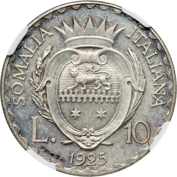 catalog Auction info Buyers Premium of 20.00% added to each and every lot The Pre-Long Beach Auction(#62) 01/30/2011 12:00 PM PST CLOSED! Lot 4780 of 4978: Italian Colonies - Italian Somaliland. Prova 10 Lire, 1925-R. NGC MS61 Click image to enlarge PreviousNextSimilar Items Lot closed - Winning bid:$2,900 (15 bids) Estimate: $1,000 - $1,200 Remove from watchlist Add to watchlist Tell a friendAsk a question The Pre-Long Beach Auction(#62) 01/30/2011 12:00 PM PST CLOSED! Description Description: Italian Colonies - Italian Somaliland. Prova 10 Lire, 1925-R. Pagani-402; KM-Pr13. Silver. Vittorio Emanuele III crowned bust right. Reverse: Crowned arms, value and date. NGC graded MS-61. Estimated Value $1,000 - 1,200. Categories: World Crowns and Minors