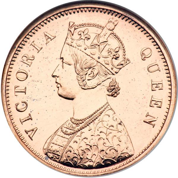 British India. ½ Pice, 1862-C. KM-466. Restrike. Victoria. Crowned bust left.