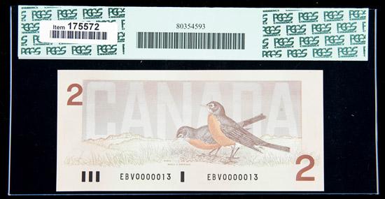 catalog Auction info Buyers Premium of 20.00% added to each and every lot The Pre-Long Beach Auction(#62) 01/30/2011 12:00 PM PST CLOSED! Lot 4378 of 4978: BC-55b-i 1986 $2. PCGS Superb Gem New 68PPQ Click image to enlarge PreviousNextSimilar Items Lot closed - Winning bid:$25 (2 bids) Estimate: $50 - $75 Remove from watchlist Add to watchlist Tell a friendAsk a question The Pre-Long Beach Auction(#62) 01/30/2011 12:00 PM PST CLOSED! Description Description: Canada, BC-55b-i 1986 $2. PCGS Superb Gem New 68PPQ. Serial number EBV0000013, the third of three consecutive. Estimated Value $50 - 75. Categories: World Crowns and Minors