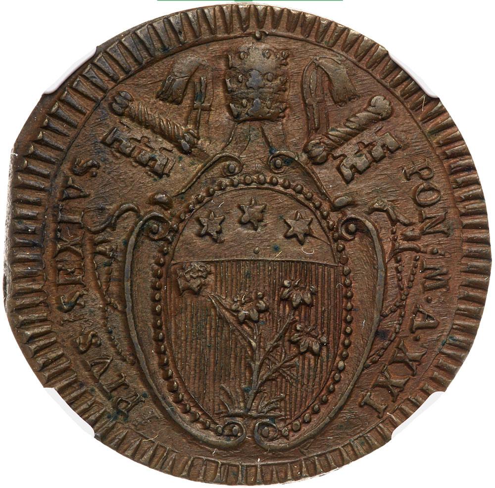 Lot 2230 of 2393: Italian States: Papal/Roman States. Two Baiocchi, (1795) (Foligno) NGC MS63 BR