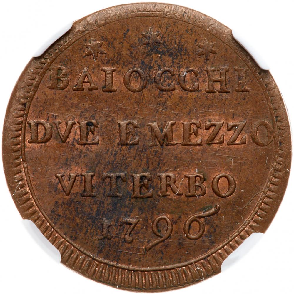 Lot 2231 of 2393: Italian States: Papal/Roman States. 2 1/2 Baiocchi, 1796 (Viterbo) NGC MS63