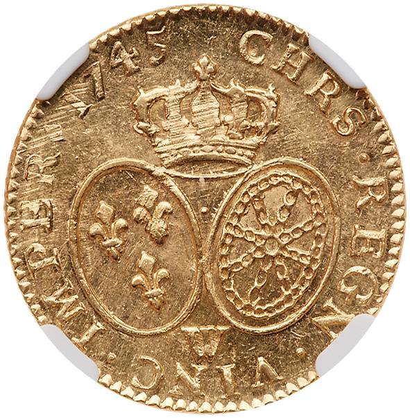Lot 1093 of 1228: France. Louis XV (1715-1774). Gold Louis d'or au bandeau, 1745-W (Lille)