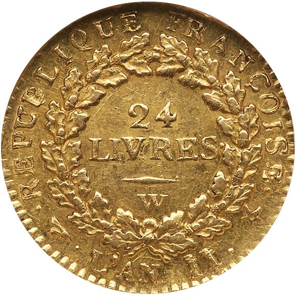 Lot 1101 of 1228: National Convention (1792-1795). Gold Louis d'or of 24 Livres, 1793-W (Lille)