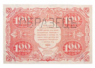 Lot 2539 of 1228: 100 Roubles, 1922, specimen.