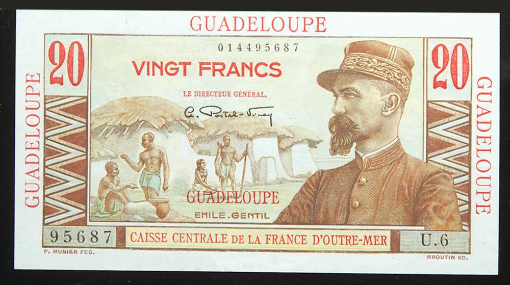Lot 1763 of 1838: WITHDRAWN - Guadeloupe. Caisse Centrale. ND (1947-49) 20 Francs