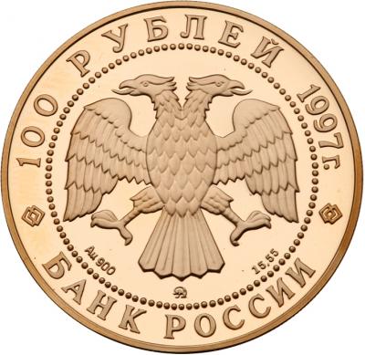 Lot 1304 of 1000: 100 Roubles 1997. GOLD. 17.28 gm. 850th Anniversary of Moscow.