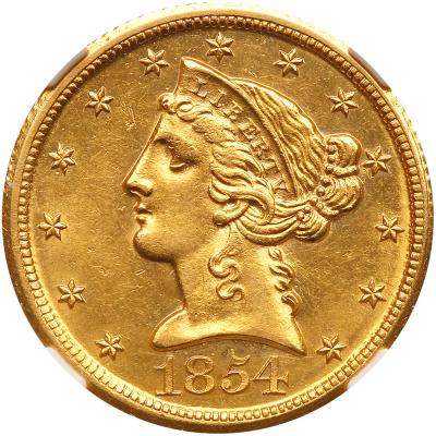 Lot 1256 of 2326: 1854-D $5 Liberty NGC MS61