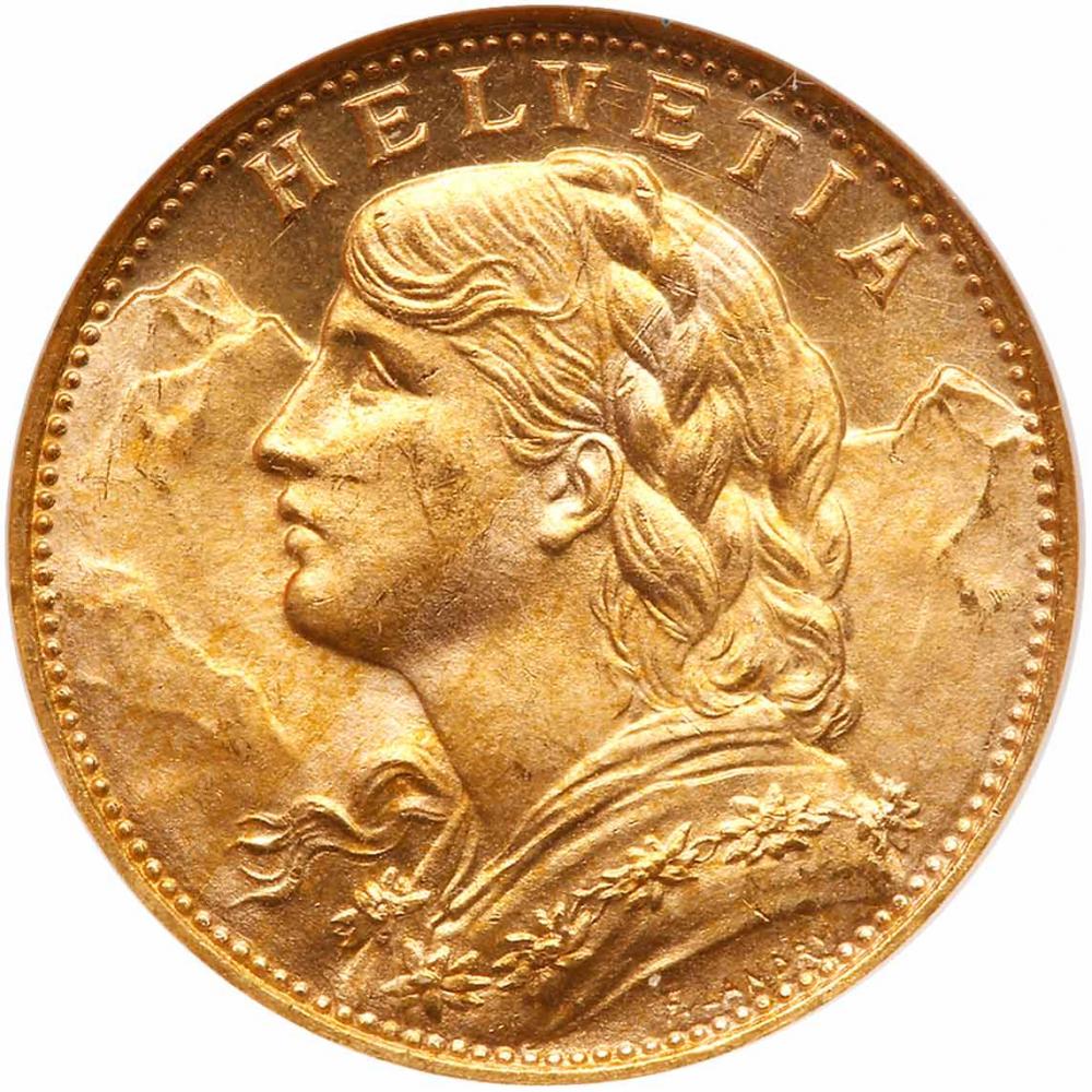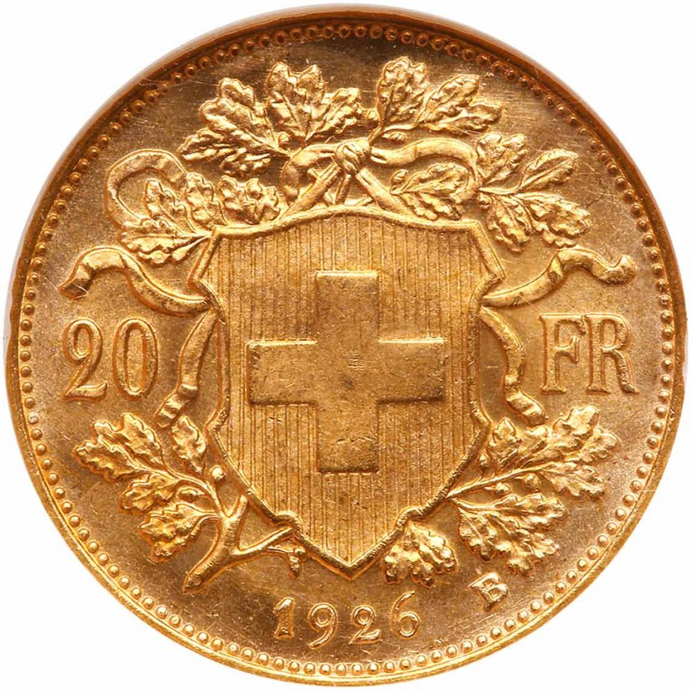 Lot 1590 of 2145: Switzerland. 20 Francs, 1926-B ANACS MS65