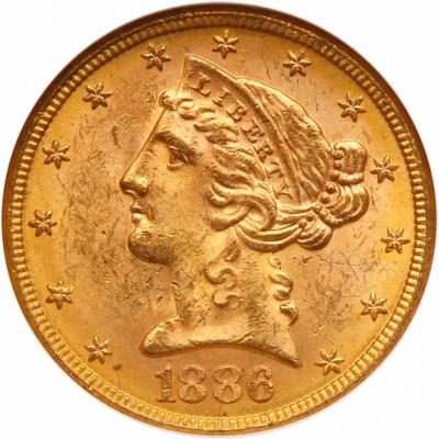 Lot 1047 of 2145: 1886-S $5 Liberty NGC MS63