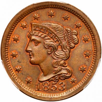 Lot 363 of 2145: 1853 N-17 R2 Repunched 1 PCGS graded MS65 Brown, CAC Approved