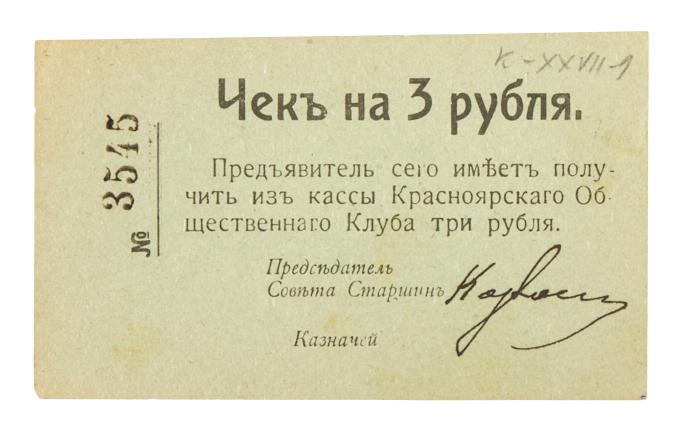 Lot 2513 of 1262: 1, 3 and 5 Roubles (1919). Siberia, Krasnoyarsk.