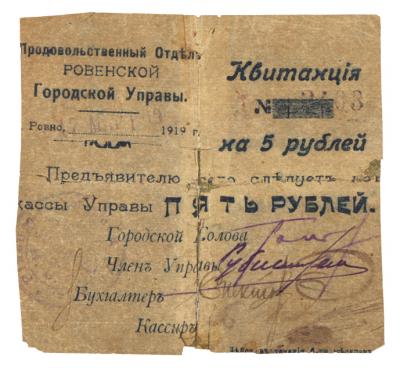 Lot 2521 of 1262: Ukraine, Rovno. 5, 10 (2), 20 Karbovatetz, 5 and 10 Roubles 1918-1919.