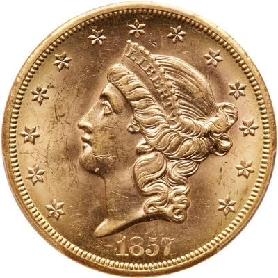 Lot 622 of 1435: 1857-S $20 Liberty PCGS MS62