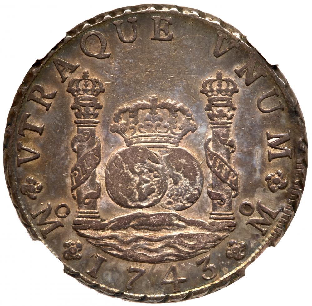 Lot 1221 of 1435: Mexico. 8 Reales, 1743-Mo MF NGC AU50