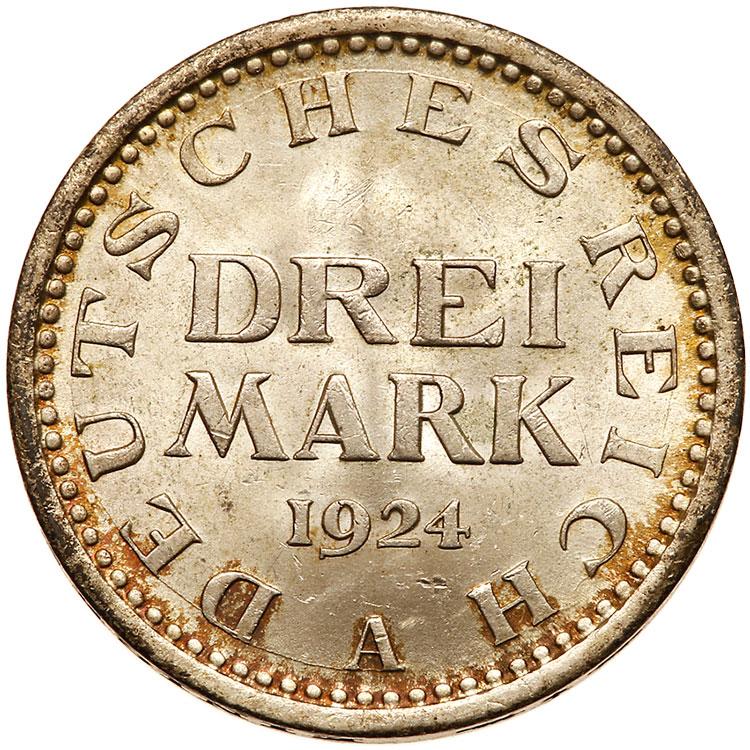 Lot 2513 of 2575: Germany. 3 Mark, 1924-A Brilliant Unc