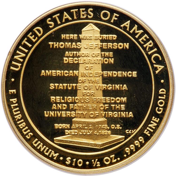 Lot 873 of 2575: $10.00 2007-W Jefferson's Liberty Gold ½ ozt PCGS PF70 DC