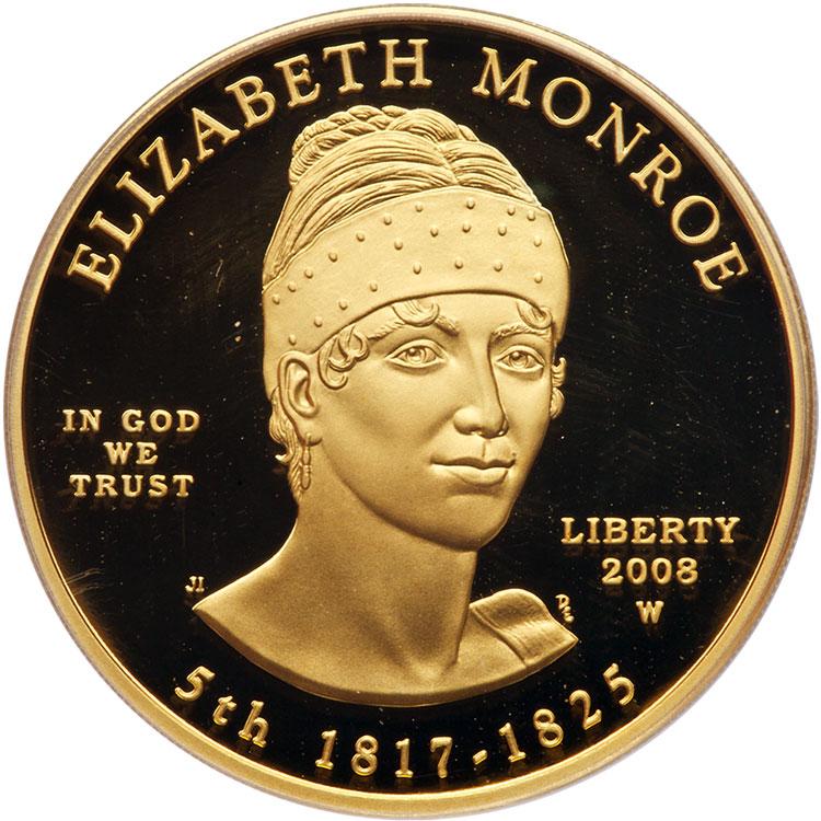 Lot 875 of 2575: $10.00 2008-W Elizabeth Monroe Gold ½ ozt PCGS PF70 DC