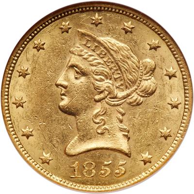 Lot 774 of 2575: 1855 $10 Liberty NGC MS60