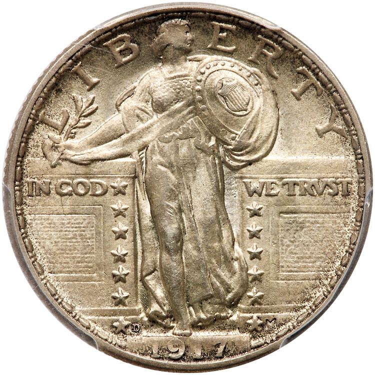 Lot 116 of 2575: 1917-D Liberty Standing 25C. Type 2 PCGS MS64